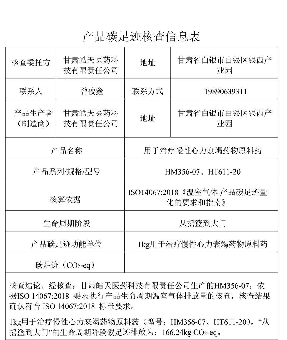 碳足跡核查報(bào)告--甘肅皓天醫(yī)藥科技有限責(zé)任公司